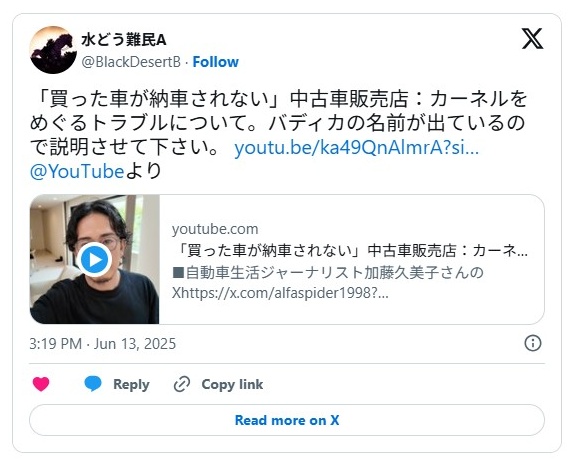 他社の「納車されない問題」にバディカの名前が出てる件