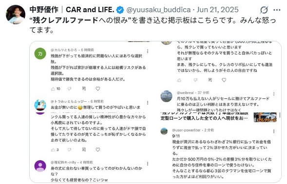 アルファード・残クレによる車好きからの批判・・