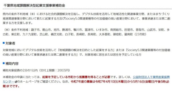 千葉県地域課題解決型起業支援事業補助金