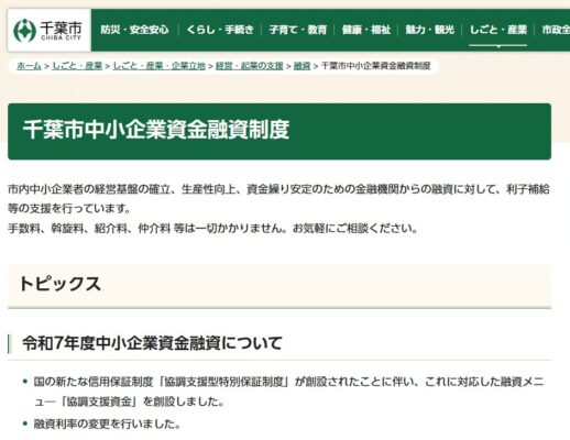 千葉市中小企業資金融資制度(※千葉市限定)