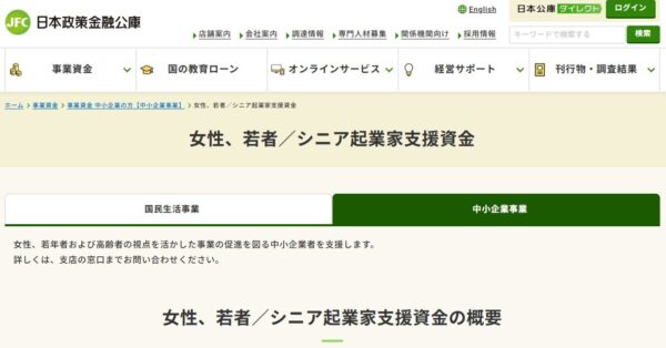 女性・若者/シニア起業家支援資金(日本政策金融公庫)