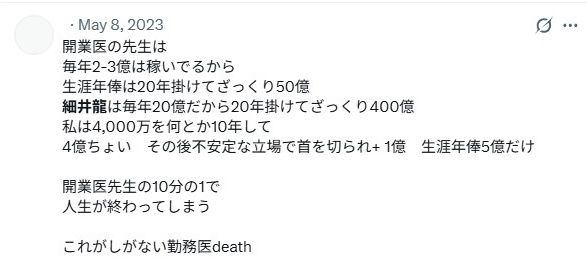 美容クリニックの社長 約3億円から5億円 クリニックの売上から自分に払う給料