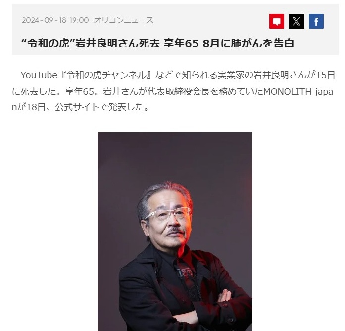彼の突然の訃報は、ビジネス界だけでなく多くの人々に大きな衝撃を与えた。