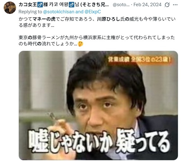昔の若い頃は、「なんでんかんでん」と言うラーメン屋を立ち上げ、トレンドと共に大ブレイクし当時の年収や資産は億レベルに稼いでた事も。