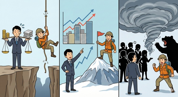彼らにとってのリスクは「社会的・経済的な失敗」であり、それを避けるために緻密な計算と戦略を練る。一方で、冒険家が恐れるのは、自分の判断ミスによって命を失うことや、自然の圧倒的な力の前に屈することである。