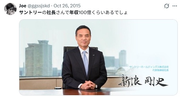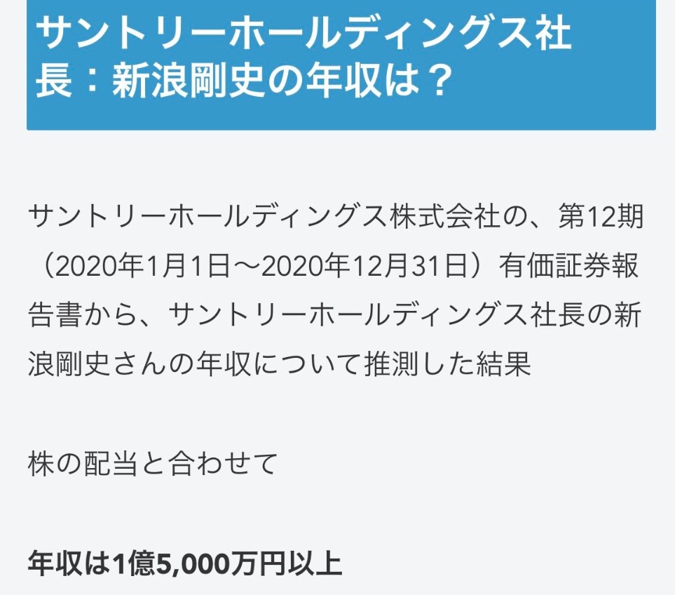 サントリーは上場していない会社なので、新浪が実際にいくらもらっていたのかという正確な数字は、役員報酬の報告書を見ても一般には公開されていない。
