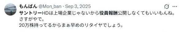 サントリー社長での役員報酬を調査