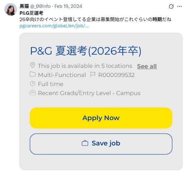 P&Gの選考は、主に「夏」「冬」「春」の3つのタームに分かれているが、職種や年度によって募集状況は変動する。