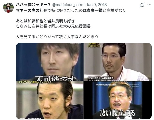 • 若い頃の貞廣一鑑はマネーの虎で最年少